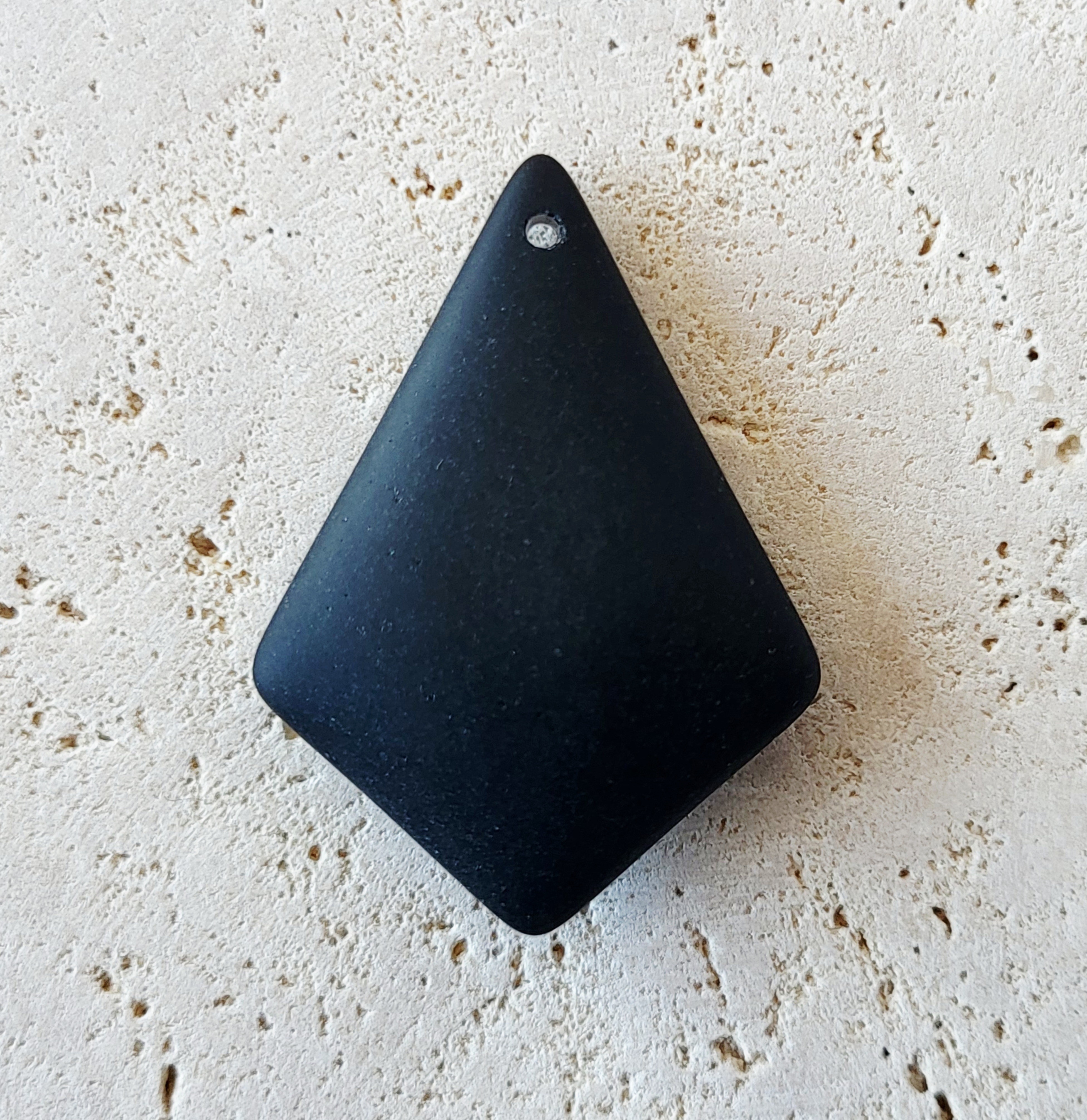 1 pendentifs diamant sea glass.Il est réalisé à partir de verre recyclé. Le verre est soumis à un processus artificiel qui simule l'effet de plusieurs années d'érosion par la mer. Certains pendentifs ont une surface dépolie et d'autres un aspect érodé.