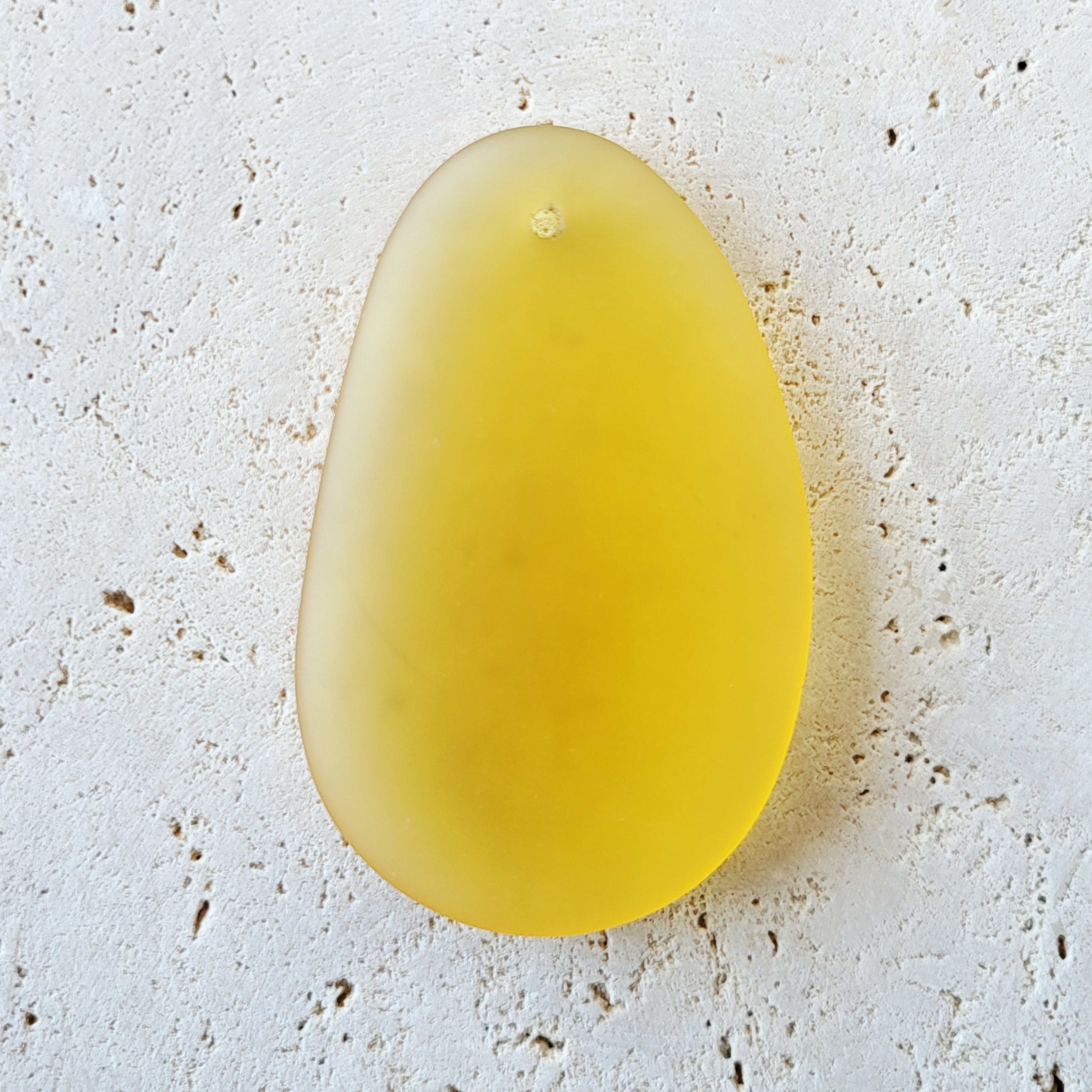 Pendentif freeform réalisé à partir de verre recyclé. Le verre est soumis à un processus artificiel qui simule l'effet de plusieurs années d'érosion par la mer. Certains pendentifs ont une surface dépolie et d'autres un aspect érodé.