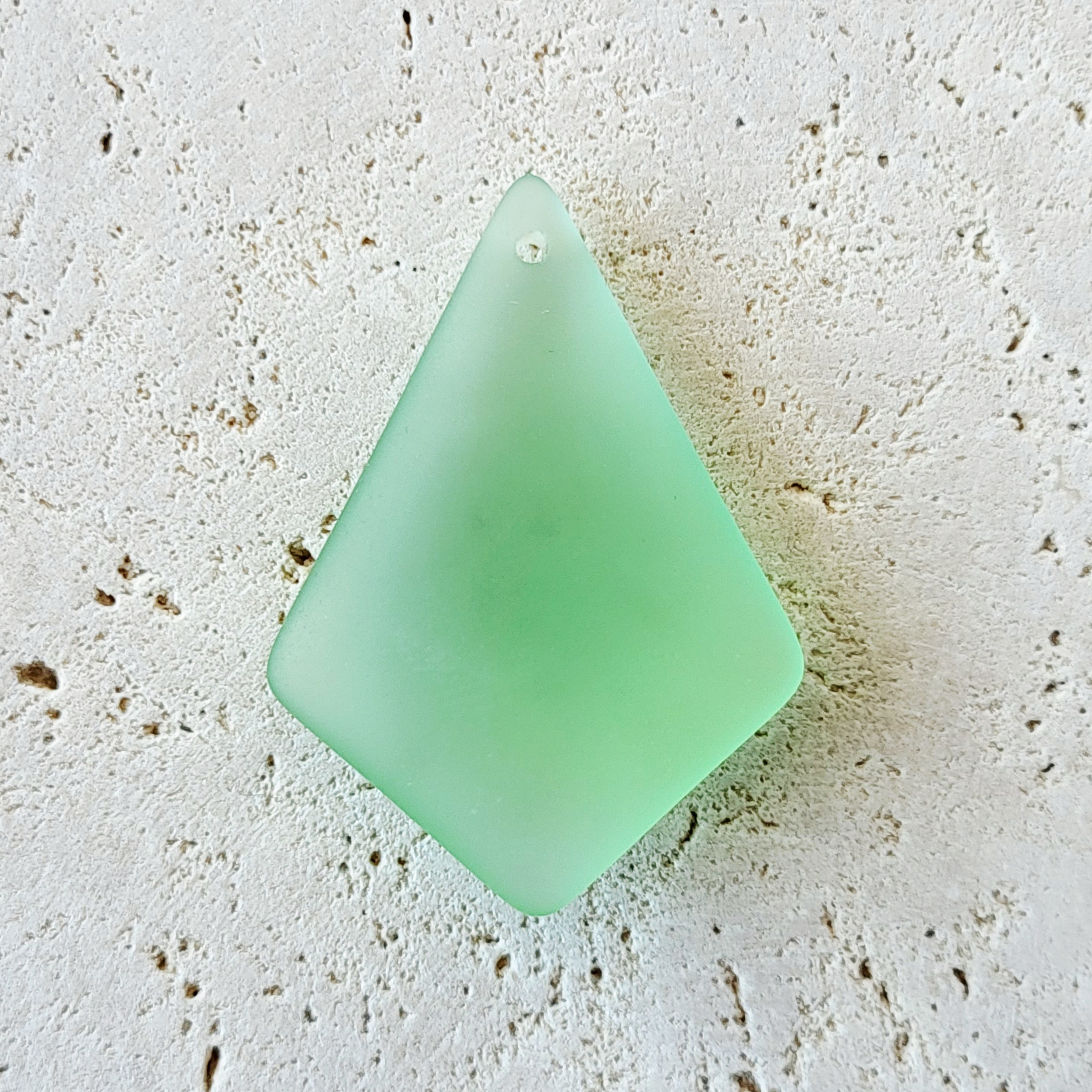 1 pendentif diamant sea glass. Il est réalisé à partir de verre recyclé. Le verre est soumis à un processus artificiel qui simule l'effet de plusieurs années d'érosion par la mer. Certains pendentifs ont une surface dépolie et d'autres un aspect érodé. Une belle imitation du verre de mer.