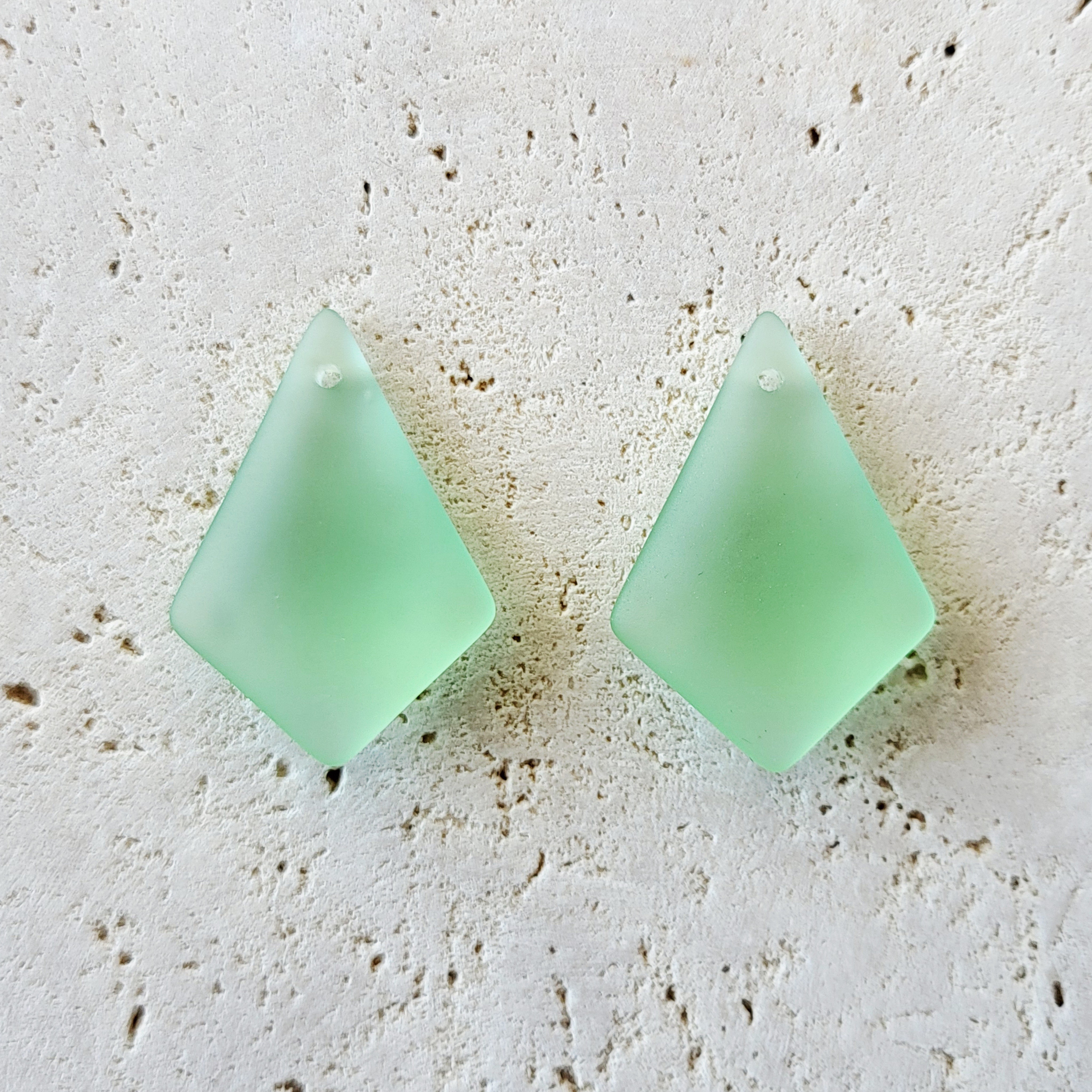 2 pendentifs diamant sea glass. Ils sont réalisés à partir de verre recyclé. Le verre est soumis à un processus artificiel qui simule l'effet de plusieurs années d'érosion par la mer. Certains pendentifs ont une surface dépolie et d'autres un aspect érodé. Une belle imitation du verre de mer.