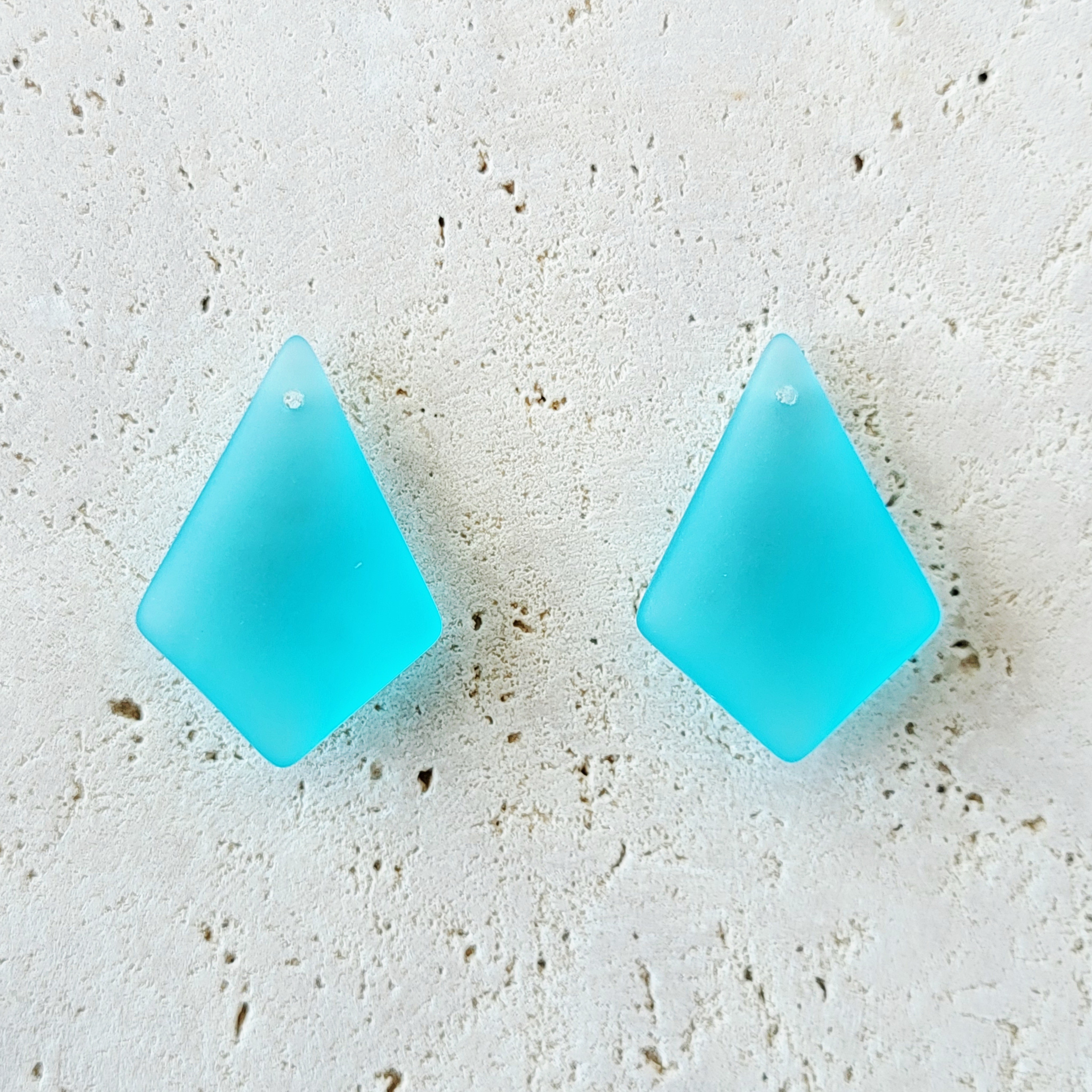 2 pendentifs diamant sea glass. Ils sont réalisés à partir de verre recyclé. Le verre est soumis à un processus artificiel qui simule l'effet de plusieurs années d'érosion par la mer. Certains pendentifs ont une surface dépolie et d'autres un aspect érodé. Une belle imitation du verre de mer.