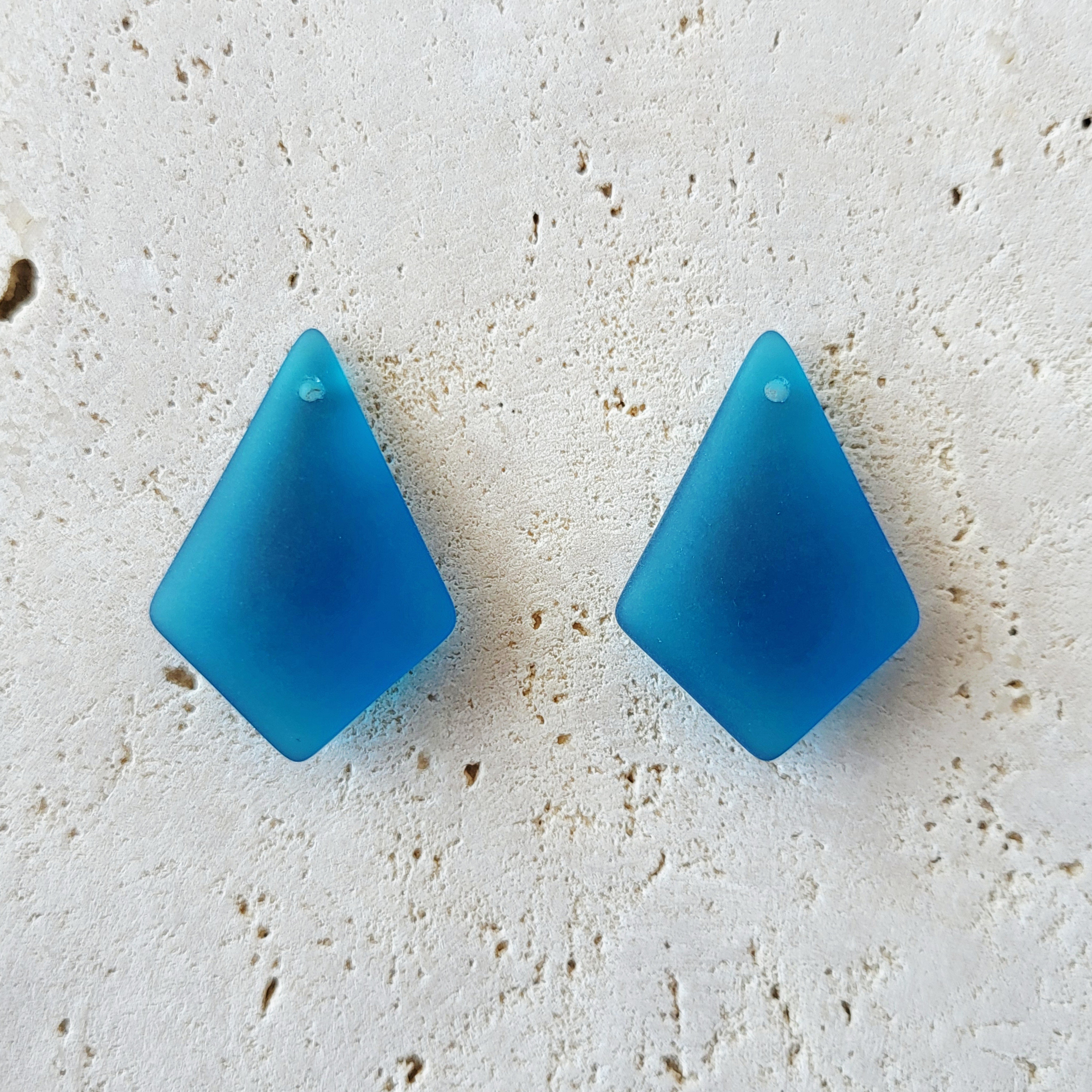 2 pendentifs diamant sea glass. Ils sont réalisés à partir de verre recyclé. Le verre est soumis à un processus artificiel qui simule l'effet de plusieurs années d'érosion par la mer. Certains pendentifs ont une surface dépolie et d'autres un aspect érodé. Une belle imitation du verre de mer.