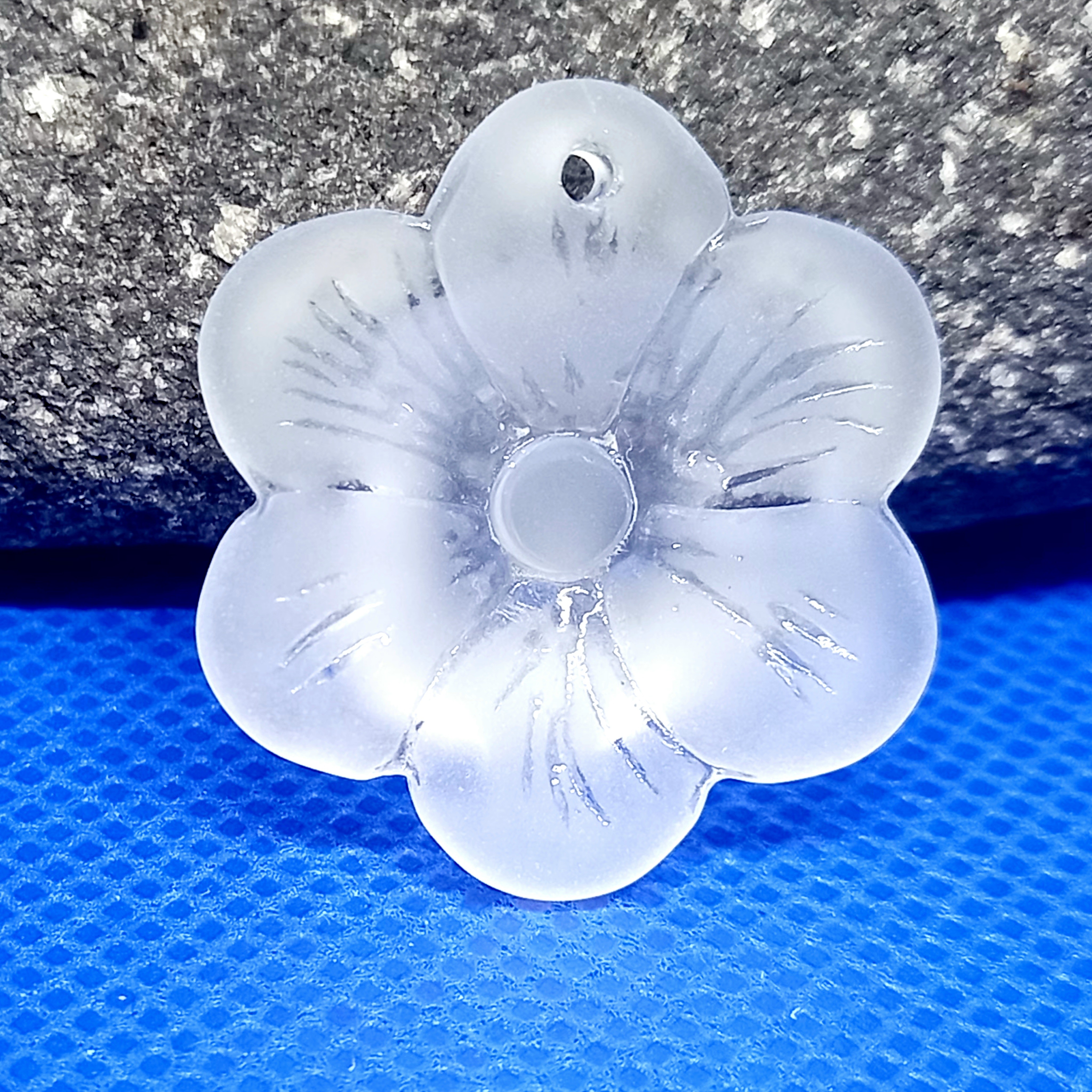 Pendentif en forme de fleur, sea glass. Il est réalisé à partir de verre recyclé. Le verre est soumis à un processus artificiel qui simule l'effet de plusieurs années d'érosion par la mer.