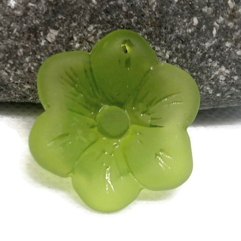 Pendentif en forme de fleur, sea glass. Il est réalisé à partir de verre recyclé. Le verre est soumis à un processus artificiel qui simule l'effet de plusieurs années d'érosion par la mer.