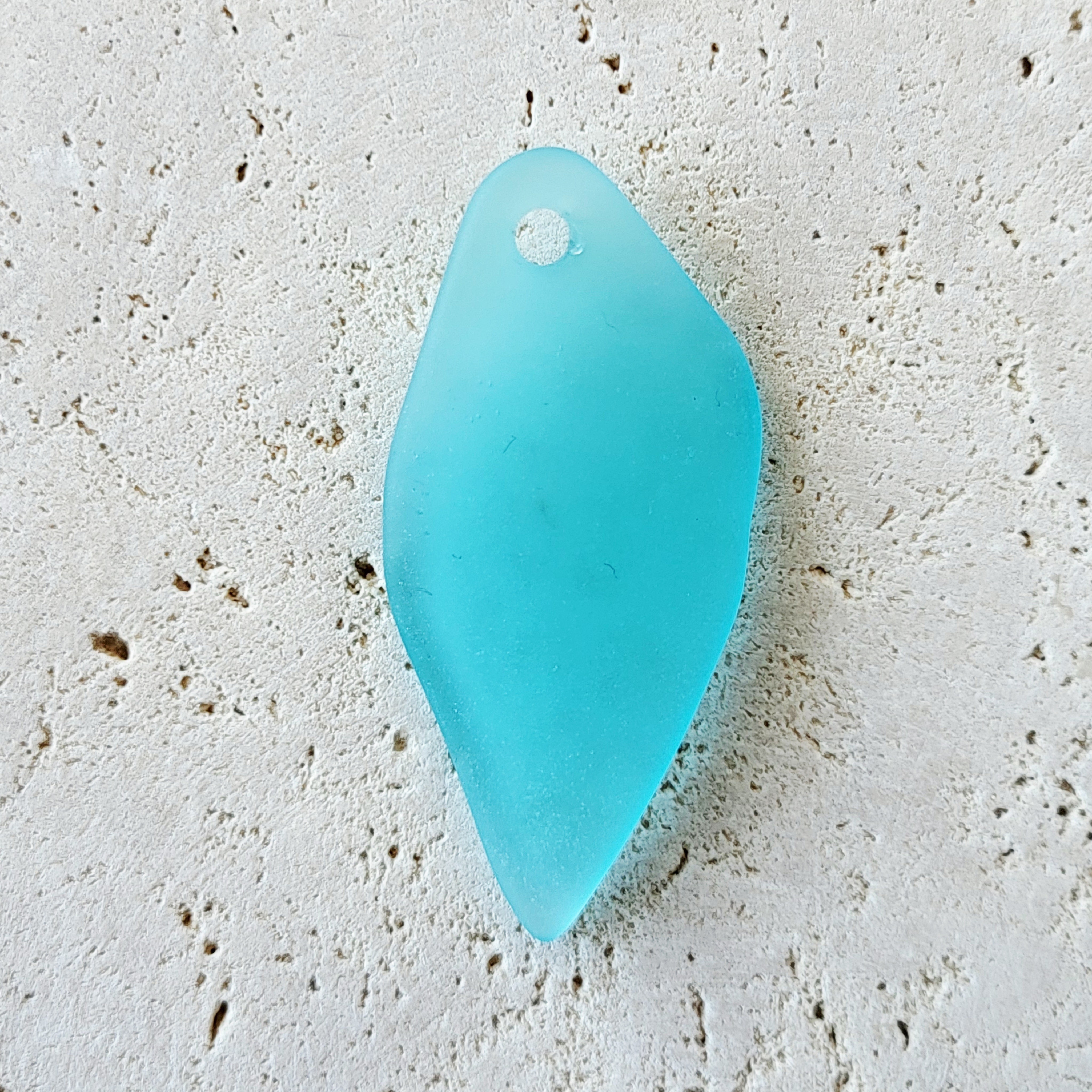 Pendentif éclat de verre sea glass. Il est réalisé à partir de verre recyclé. Le verre est soumis à un processus artificiel qui simule l'effet de plusieurs années d'érosion par la mer. Certains pendentifs ont une surface dépolie et d'autres un aspect érodé.