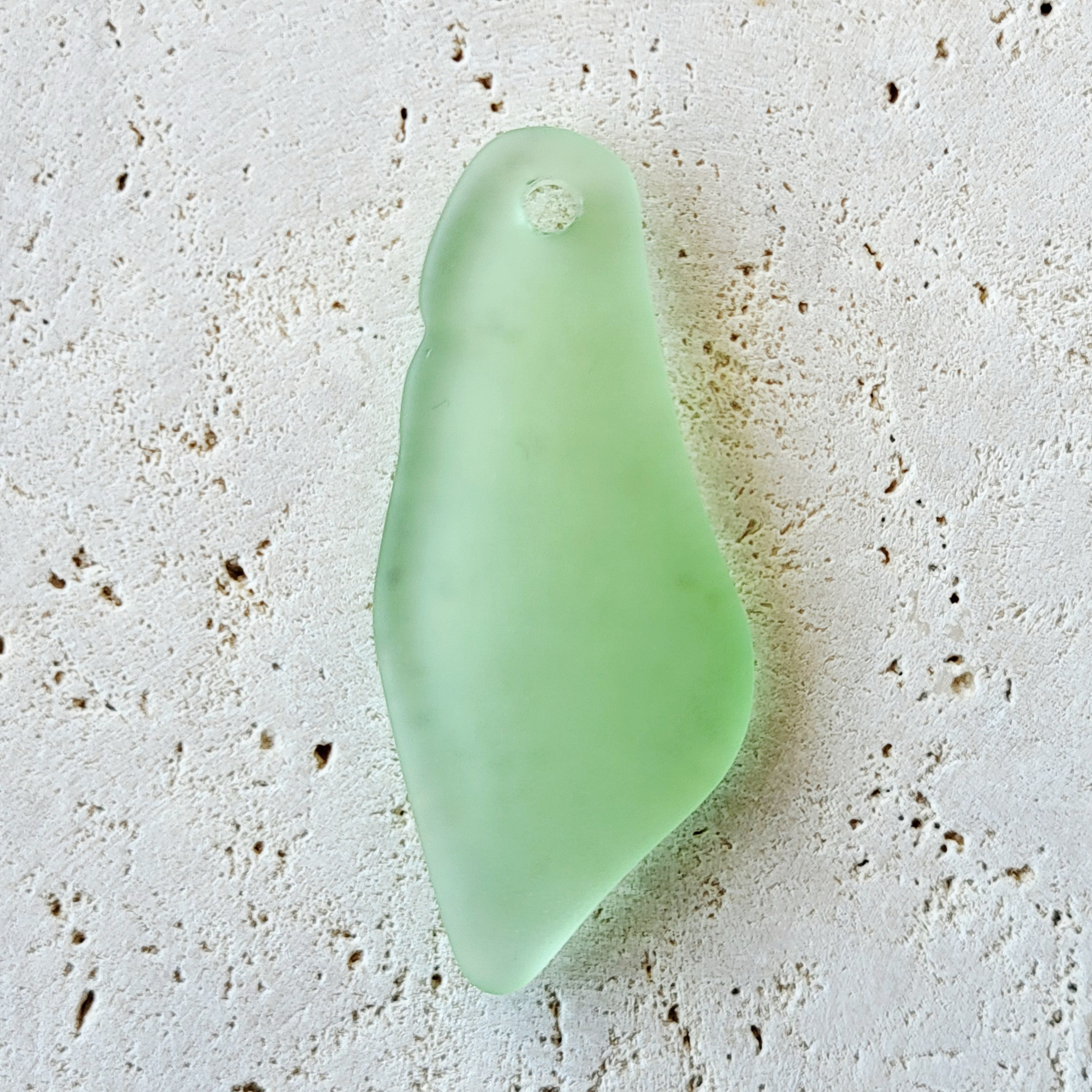1 Pendentif éclat de verre sea glass. Il est réalisé à partir de verre recyclé. Le verre est soumis à un processus artificiel qui simule l'effet de plusieurs années d'érosion par la mer. Certains pendentifs ont une surface dépolie et d'autres un aspect érodé.