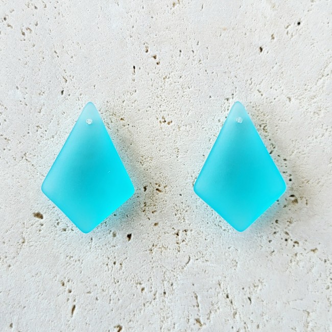 2 pendentifs diamant, verre recyclé, turquoise, 28x20 mm