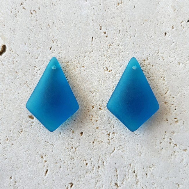 2 pendentifs diamant, verre recyclé, teal, 28x20 mm