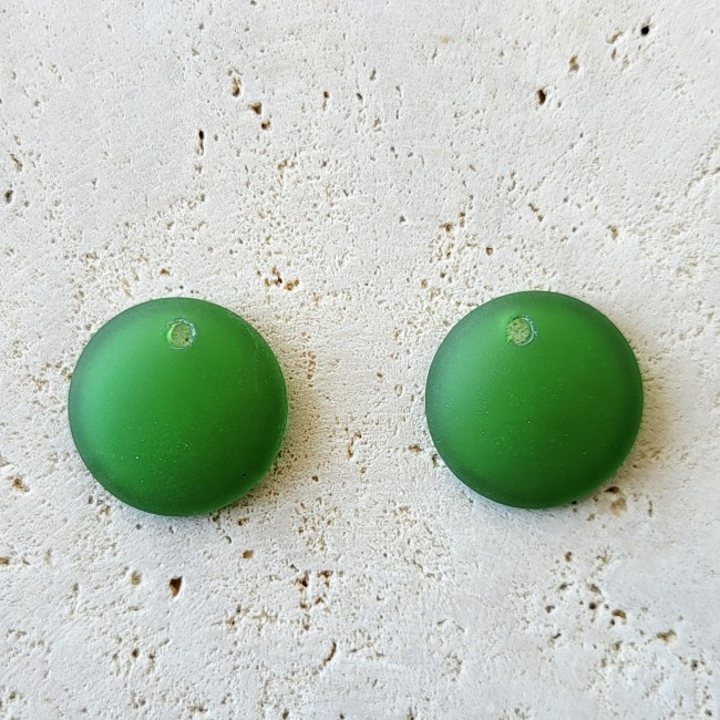 2 pendentifs ronds concaves, vert, verre recyclé, 18 mm