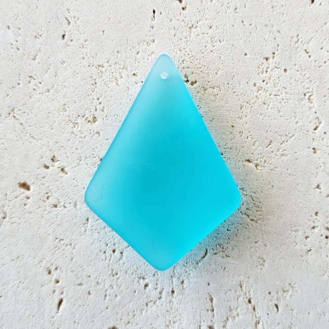 1 pendentif diamant, verre recyclé, turquoise, 37x27 mm