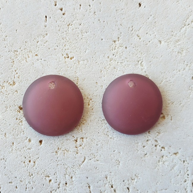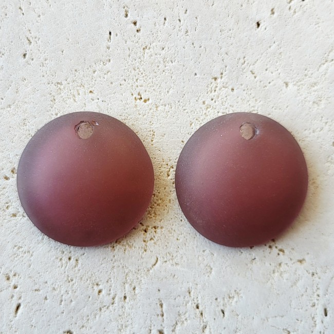 2 pendentifs ronds concaves, améthyste, verre recyclé, 24 mm