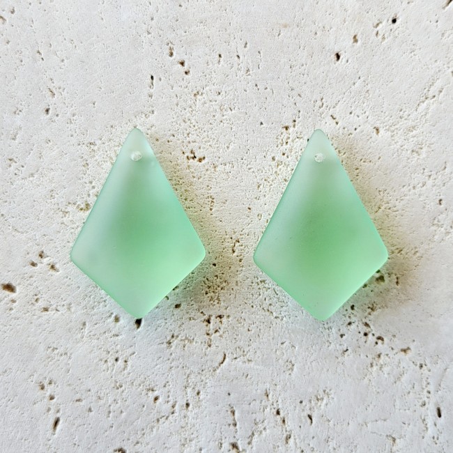 2 pendentifs diamant, verre recyclé, péridot, 28x20 mm