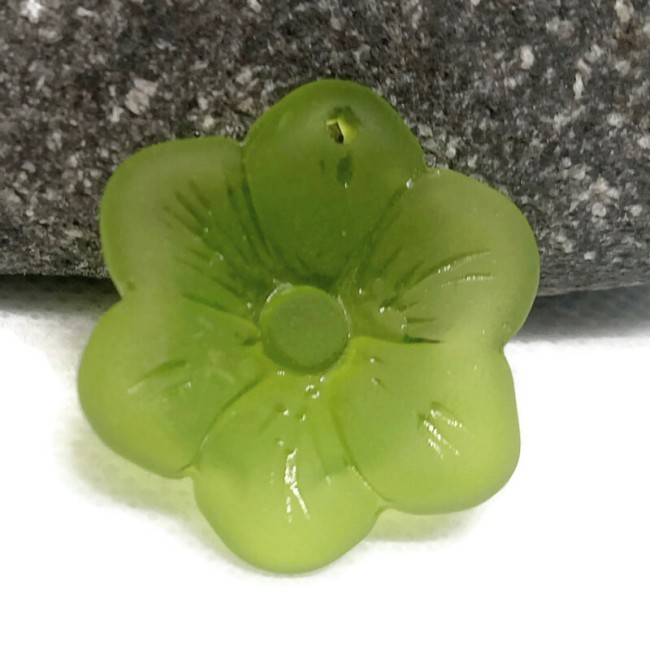 1 Pendentif fleur, vert, verre recyclé, 25 mm