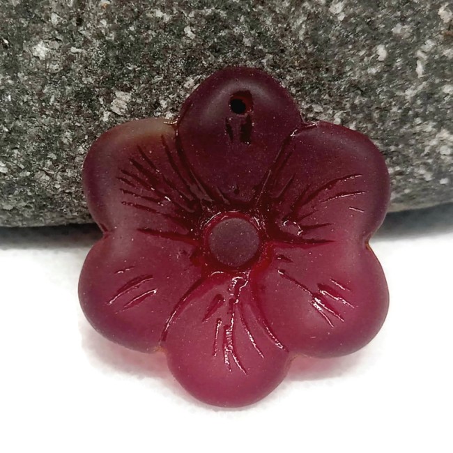 1 Pendentif fleur, rouge, verre recyclé, 25 mm