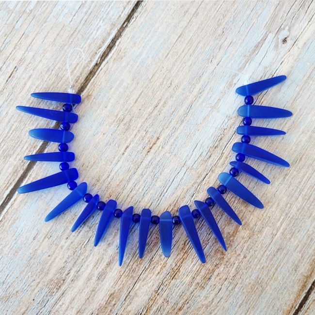 Perles arêtes de poisson, verre recyclé, bleu royal, 2-4x20-30 mm