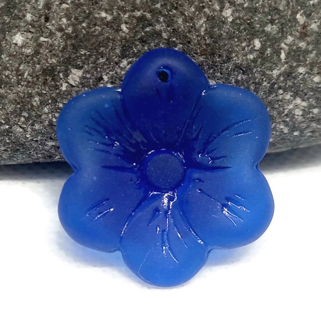 1 Pendentif fleur, bleu royal, verre recyclé, 25 mm